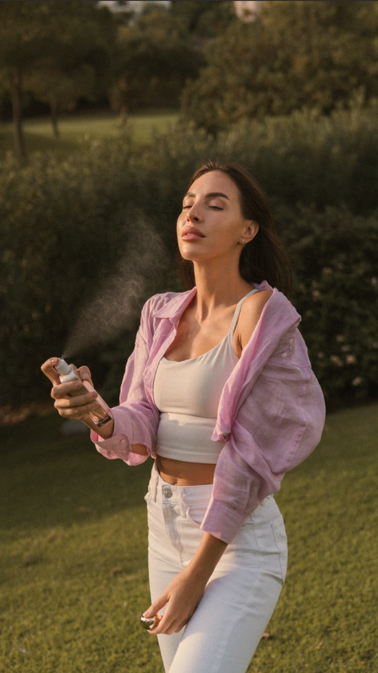 Spray gently onto clean skin. A soft veil that hydrates, calms, and refreshes.